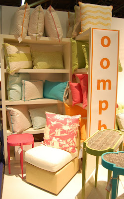 Oomph was the big hit at the NYIGF in August and they are back this time with some new table designs and colors but their pillows also have a lot of oomph.